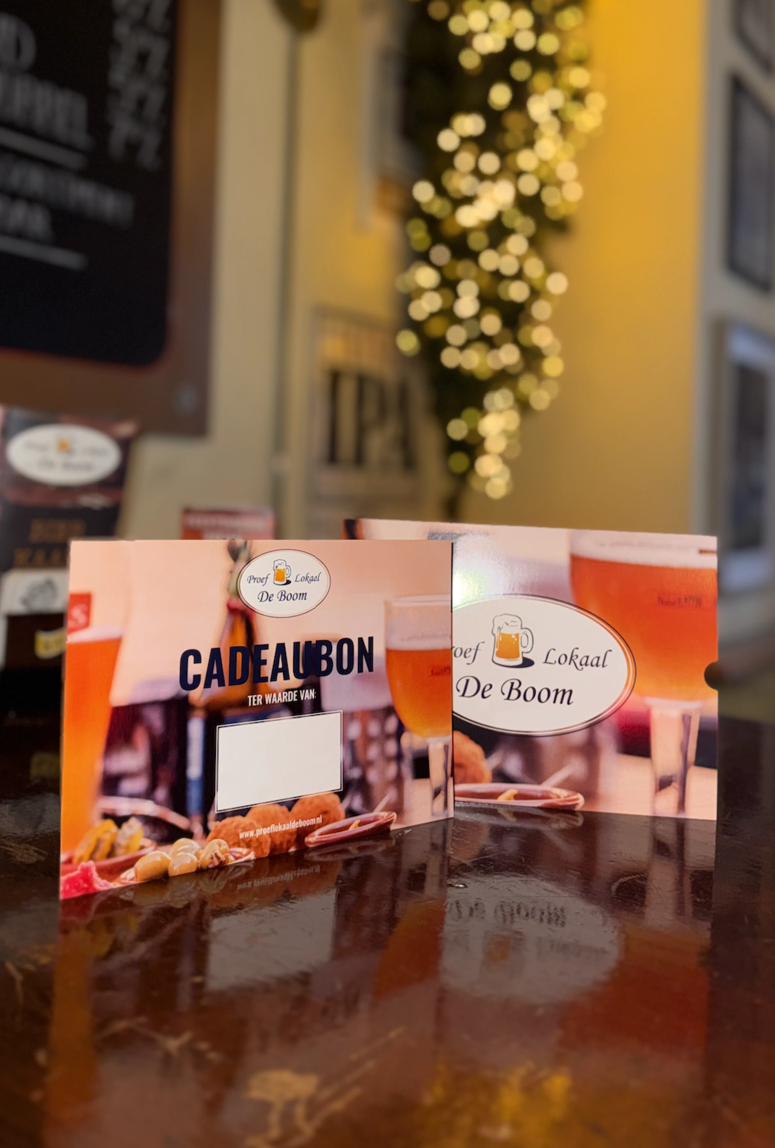 De feestdagen komen eraan!Op zoek naar een leuk en smaakvol cadeau?Geef een cadeaubon van Proeflokaal De Boom.Gezellig samen genieten, precies zoals het hoort!
